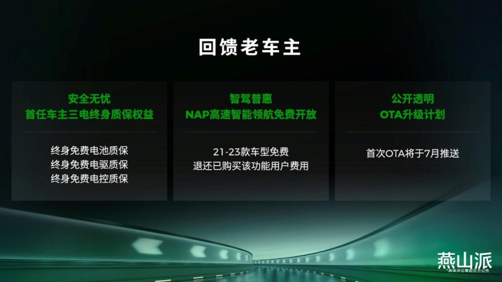 2、即日起能够支持使用NAP高速智能领航功能的老款车型,未来将全部免费开放,前期购买过该功能的用户零跑将退还相应费用!